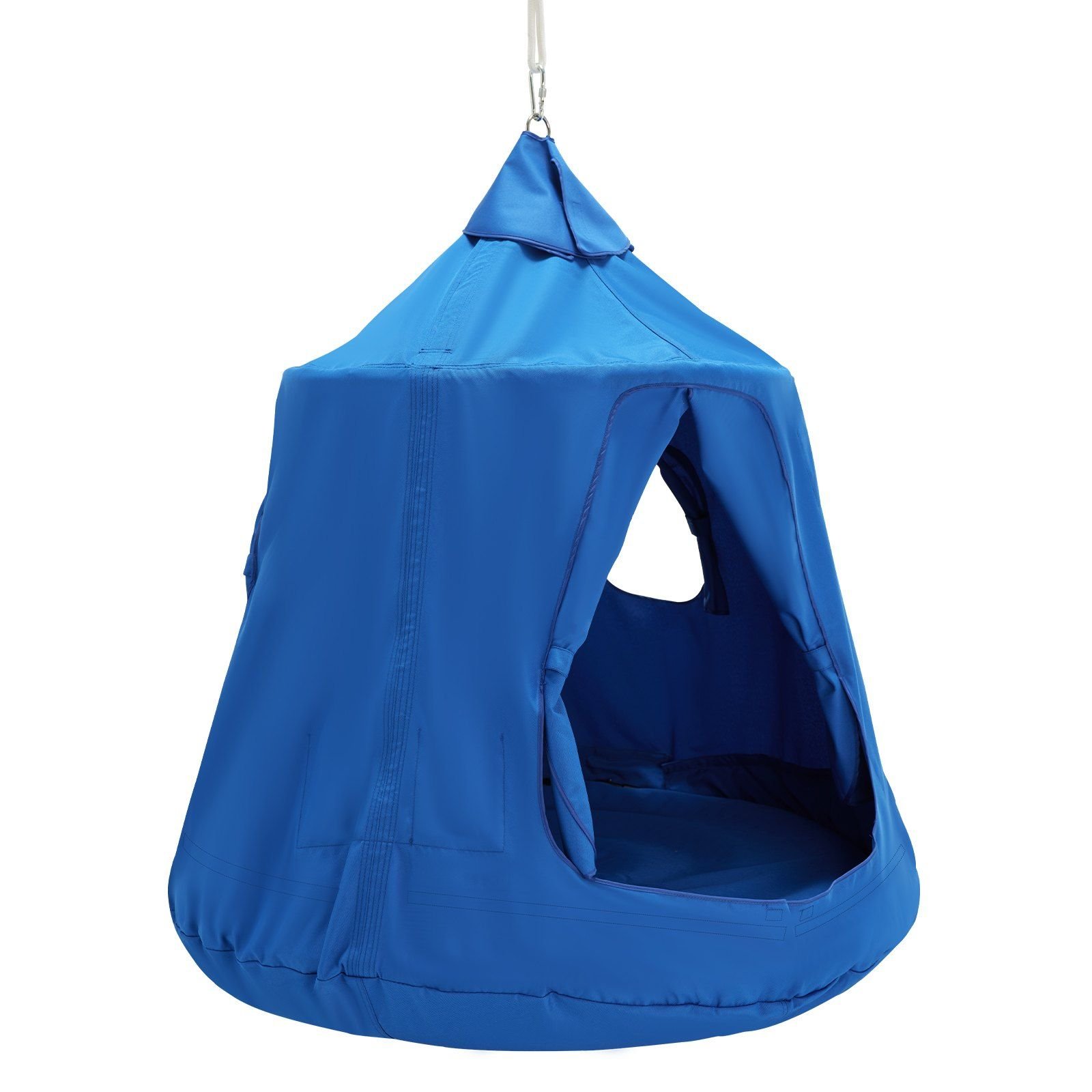 4.Spacious Interior: Measuring 43x43x46 inch, the hanging tent is supported by three curved steel rods and can comfortably accommodate up to three children or one adult, offering ample space for various activities.
